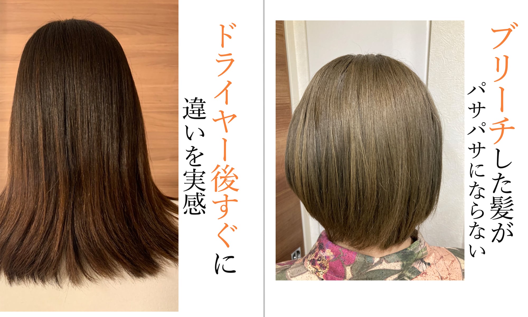 画像は無加工です。美容室でトリートメント当てたあとの超絶サラサラ艶髪の写真はどう頑張っても撮れませんが、お客様が満足いただいてるのでOKです。詳細は公式Instagramをご覧ください。